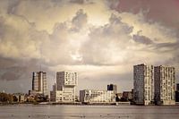 Een stoere weergave van de skyline van Almere.