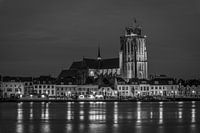 Skyline van Dordrecht met de Grote Kerk in zwart-wit
