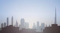 Digital art illustratie van de skyline van Dubai bij zonsopkomst