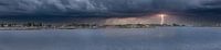 Panorama van de skyline van Enkhuizen met een dominante wolkenlucht in het beeld.