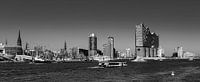 Skyline van Hamburg bij de Elbphilharmonie- Panorama in zwart-wit