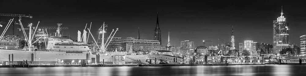 * Hamburg Skyline 3 * Bijzonder breed XXL-panoramabeeld in zwart-wit.
