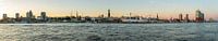 Skyline van Hamburg - volledig panorama van de Landungsbrücken tot de Elbphilharmonie bij zonsondergang van Frank Herrmann