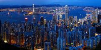 Koop de foto Skyline van Hong Kong in de avond van Atelier Liesjes op canvas, aluminium dibond, (ingelijste) fotoprint, behang en ArtFrame, op maat geprint in Fine-Art kwaliteit.