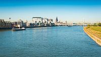Uitzicht over de Rijn naar de opvallende bezienswaardigheden van de stad Keulen