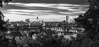 De skyline van Leipzig in Saksen/Duitsland, gefotografeerd vanaf de Fockeberg.