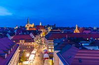 Panoramisch uitzicht over de Fleischbrückebrug naar de Kaiserburg en de oude stad van Neurenberg, Duitsland.
