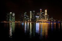 Skyline van Singapore. Avondopname van het zakendistrict bij Marina Bay, het zuidelijke gedeelte van Singapore