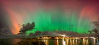 Een fantastische noorderlicht show was zichtbaar vanaf de havendam op Terschelling. de pilaren en groene, rode en oranje kleuren waren heel erg mooi te zien.