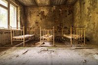 Kinderbedjes in een ziekenhuis in Pripjat