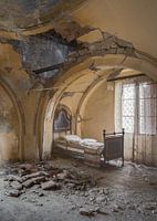 Op deze oude slaapkamer was een klein torentje gebouwd dat gedeeltelijk is ingestort. De brokstukken zijn duidelijk zichtbaar.