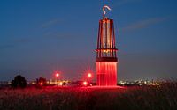 Het licht op de Rheinpreussen slakkenberg bij nacht, Moers, Duitsland