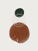 Simplistische, digitale kunst. Abstracte vormen in terracotta kleur, beige, zandkleur en groen. Mediterraanse sfeer. Waterverf + slakkenhuis vorm. Mooi als collage.