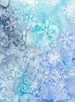 Deze losse aquarel toont sneeuwvlokken als ijskristallen voor prachtige blauwe kleurverlopen. De prachtige ijskristallook is gecreëerd met behulp van de zouttechniek.