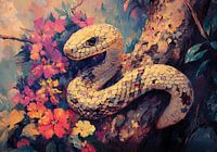 Koop dit schilderij Slang "Het zachte gevaar: slang in stille dans" van Niklas Maximilian als reproductie geprint op canvas, aluminium dibond, (ingelijste) fotoprint, behang en ArtFrame. Voor jou op maat geprint in Fine-Art kwaliteit.