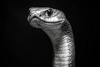Een betoverend spel van licht en schaduw ontvouwt zich in dit indrukwekkende zwart-wit portret van een majestueuze slangenkop. De glinsterende schubben en doordringende ogen stralen een betoverende elegantie uit. Dit kunstwerk, ideaal voor een moderne woonkamer of een creatief kantoor, zal ieders aandacht trekken en een vleugje avontuur…