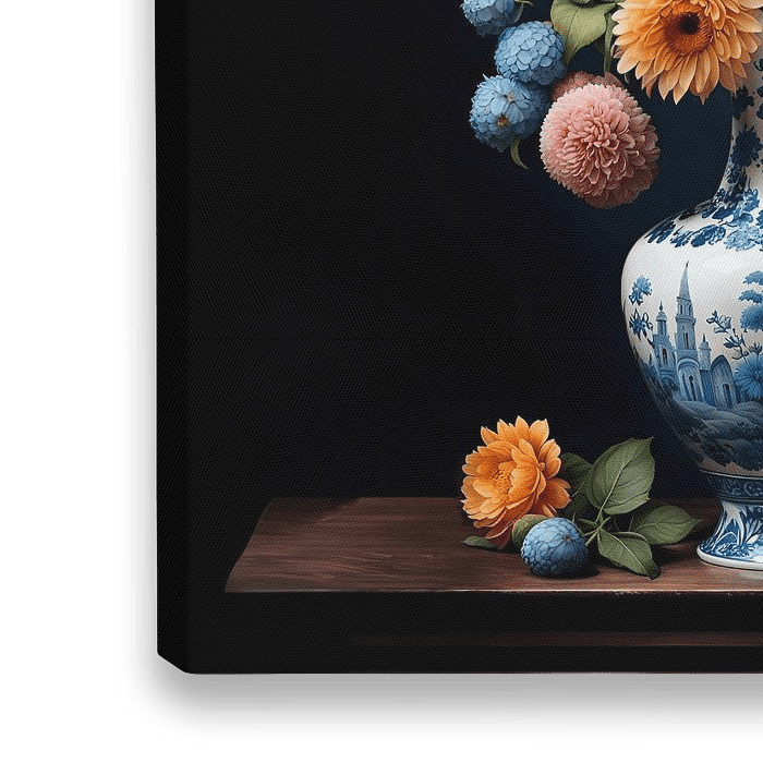 Deze "Delfts Blauwe Vaas" gevuld met is een een prachtig en opulent bouquet is verrijking in jouw interieur. Of je het nu in de woonkamer ophangt of in de hal, dit werk zal zeker de aandacht in iedere ruimte trekken. Haal een stukje Nederlandse kunst en cultuur in huis met deze knipoog naar de rijke geschiedenis van Delfts Blauw en de…
