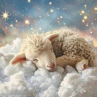Deze betoverende illustratie toont een slapend lammetje, genesteld op zachte wolken onder een fonkelende sterrenhemel. De zachte pastelkleuren en gedetailleerde weergave van de sterren creëren een dromerige en rustgevende sfeer, perfect voor een kinderkamer. Ideaal voor ouders die op zoek zijn naar een liefdevolle en magische muurkunst om een vredige omgeving voor hun kinderen te creëren. Een prachtig cadeau voor dierenliefhebbers en een charmante toevoeging aan de wereld van elk kind.