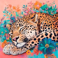Koop dit bloemen kunstwerk Slapend luipaard met bloemen van Poster Art Shop als print op canvas, aluminium dibond, (ingelijste) fotoprint, behang en ArtFrame. Voor jou op maat geprint in Fine-Art kwaliteit.