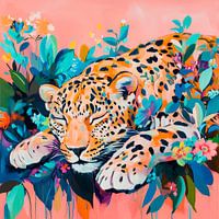 Koop dit bloemen kunstwerk Slapend luipaard tussen bloemen van Poster Art Shop als print op canvas, aluminium dibond, (ingelijste) fotoprint, behang en ArtFrame. Voor jou op maat geprint in Fine-Art kwaliteit.