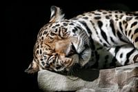 Een schattig slapende amoerpanter. Deze foto is bewerkt, heeft lichtere kleuren gekregen en een aquareel effect.