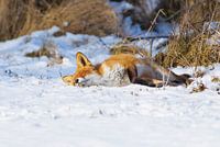 Tijdens de winter en m'n wandeling door de Amsterdamse Waterleidingduinen zag ik deze slapende vos liggen in de sneeuw.