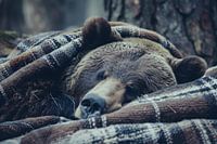 Slapende beer gewikkeld in geruite deken van Imperial Art House