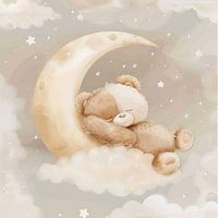 Deze betoverende muurschildering toont een pluizige teddybeer die vredig slaapt op zachte wolken onder een fonkelende sterrenhemel. De zachte, pastelkleurige achtergrond creëert een rustgevende en liefdevolle sfeer, ideaal voor kinderkamers of kinderdagverblijven. Perfect voor ouders die een warme en dromerige omgeving willen creëren…