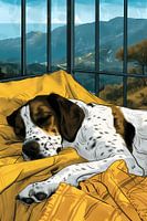 Dit adembenemende kunstwerk vangt de serene rust van een hond in slaap, genesteld in een warm deken met een prachtig berglandschap als achtergrond. De hyperrealistische stijl van de kunstenaar brengt elk detail tot leven, van de zachte vacht van de hond tot de subtiele kleurnuances in het landschap. Dit stuk straalt een gevoel van kalmte en vrede uit, waardoor het een perfecte aanvulling is op elke ruimte waar ontspanning en reflectie worden gewaardeerd.