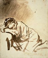 Jonge vrouw slaapt, een tekening, Rembrandt (1654)