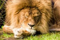 Slapende leeuw. Foto is bewerkt in aquarel look.