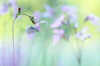 Deze vlinder trof ik vroeg in de ochtend slapend aan op een bloem. Zo mooi zoals ze daar hangen en genieten als je ziet hoe ze langzaam opwarmen en een nieuwe dag tegemoet gaan. Voor een fotograaf zijn deze ochtenden echt heerlijk. De wekker gaat heel erg vroeg af, want je wilt de vlinders graag aantreffen op hun slaapplek. Vaak ga ik de avond van tevoren al kijken in mijn favoriete natuurgebied of ik kan zien waar de vlinders precies hun slaapplekje hebben, want dan hoef ik de volgende ochtend niet zo lang te zoeken. De vlinders zijn zo klein dat je ze erg gemakkelijk over het hoofd ziet, maar als je weet waar ze hangen dan wordt het een stuk makkelijker. Als de zon dan opkomt kun je gebruik maken van het mooie zachte ochtendlicht en dat levert altijd mooie foto's op. Mocht u dit werk aanschaffen, dan wens ik u hiervan erg veel plezier.