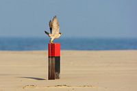 Slechtvalk (Falco peregrinus) op het strand van een Nederlands Waddeneiland.