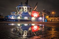 Koop de Rotterdam foto Sleepboot VB Ginger reflectie van Jan Georg Meijer op canvas, aluminium dibond, (ingelijste) fotoprint, behang en ArtFrame, op maat geprint in Fine-Art kwaliteit.