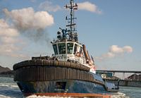 Koop de foto Sleepboot in actie op de Maasvlakte van scheepskijkerhavenfotografie op canvas, aluminium dibond, (ingelijste) fotoprint, behang en ArtFrame, op maat geprint in Fine-Art kwaliteit.