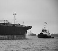 Sleepboten in actie in actie. op een regenachtige dag langs het Noordzeekanaal schepen fotograferen. Het geeft iets extra's aan de foto's een andere sfeer.