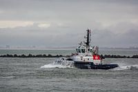 Sleepboot in de golven op de Nieuwe Waterweg. van scheepskijkerhavenfotografie