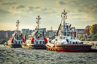 Koop de foto Sleepboten in de haven van Hamburg van Sabine Wagner op canvas, aluminium dibond, (ingelijste) fotoprint, behang en ArtFrame, op maat geprint in Fine-Art kwaliteit.