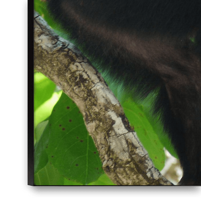 Reizen door de bomen van Costa Rica op de rug van moeder Kapucijn aap. Foto is genomen net op het moment dat het vrouwtje gaat afzetten naar de volgende boomtop.