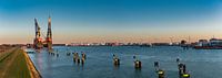 Sleipnir - grootste kraanschip ter wereld in Rotterdam Zonsondergang. hij lag op de Landtong te Rozenburg. Mooi offshore project. Panoramafoto met veel water en mooie lucht