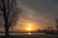 Landschap bij de Slijk-Ewijkse plassen in Slijk-Ewijk, Gelderland, met zicht op het meer tijdens het gouden uurtje na zonsopkomst op een mooie winterochtend
