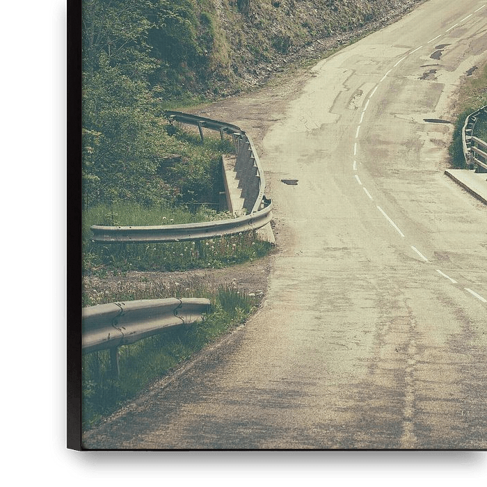 Koop de foto Slingerende weg omhoog van Pieter Wolthoorn op canvas, aluminium dibond, (ingelijste) fotoprint, behang en ArtFrame, op maat geprint in Fine-Art kwaliteit.