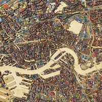 Een kaart van Rotterdam, gemaakt van tachtig verschillende soorten digitaal sloophout op een basisplaat van virtueel multiplex en electronische spaanplaat. Te zien zijn de binnenstad en wijde omgeving, met onder andere de Nieuwe Maas, de Kralingse en Bergse Plassen en de Waalhaven. ook stedelijke iconen als Ahoy, De Kuip en het Centraal Station zijn op deze kaart te spotten.