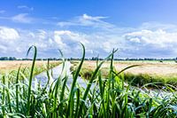 Het Groene Hart herbergt een Stilte Gebied. Een typisch Hollands weide landschap, waar vogels en vee alle ruimte krijgen. Daarboven is een typische Hollandse wolkenlucht te zien.