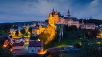 Een avond na zonsondergang tijdens het blauwe uur bij Slot Sigmaringen. Dit Slot in de plaats Sigmaringen wordt ook wel Slot Hohenzollern genoemd, wat nogal verwarrend is, er aangezien want er is ook kasteel Hohenzollern is bij Hechingen.