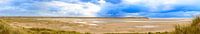 Sluftervallei op het strand van het eiland Texel in het Nederlandse Waddengebied tijdens een zonnige maar stormachtige herfstmiddag aan het Noordzeestrand.