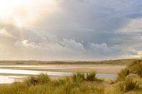 Sluftervallei op het strand van het eiland Texel in het Nederlandse Waddenzeegebied tijdens een zonnige maar stormachtige herfstmiddag aan het Noordzeestrand.