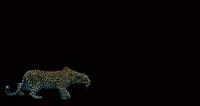 Dit luipaard sluipt plotseling voor ons langs. Dit dier ziet dieren in de verte. Geconcentreerd gaat hij erop af. Wildlife op zijn best. De foto toont een sluipend luipaard tegen een zwarte achtergrond.