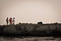 Deze vrienden uit de sloppenwijken van de haven van Jakarta lopen samen hun ronde.