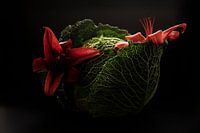 Groene kool en rode leliebloem. Combinatie van gezond en mooi.
